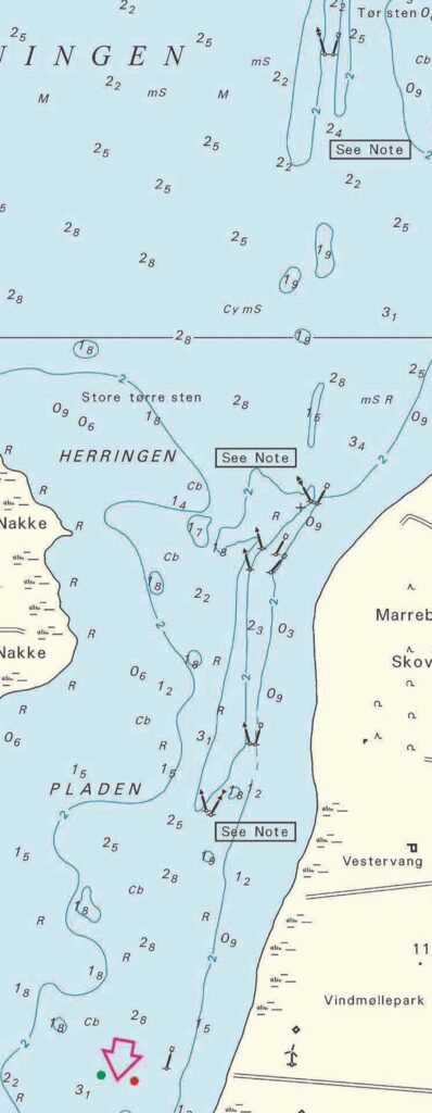 In der Hjelms Rende und in dem Fahrwasser bei Nykøbing beträgt die maximale Geschwindigkeit 5 Knoten.