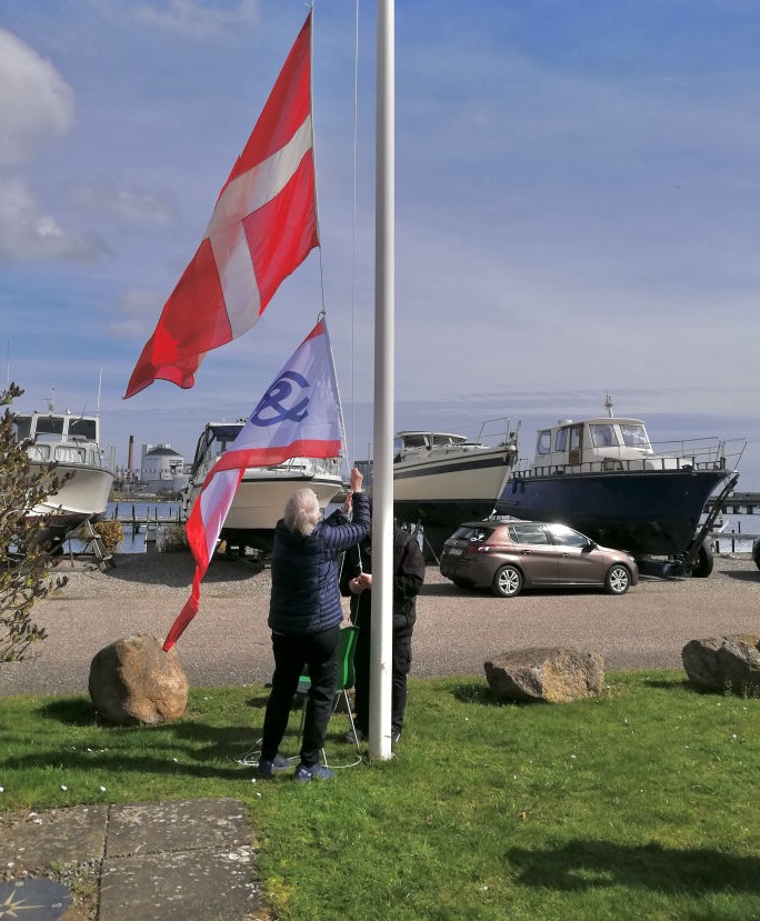 Efter vi har halet standeren op sammen med Dannebrog, har Jørn Bonde lovet at spille på trompet, mens vi synger en enkelt sang, som vi plejer.